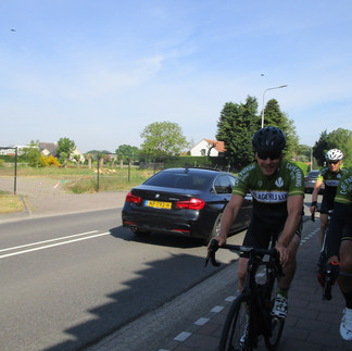 Van in het begin een stevig windje, maar richting Zuiddorpe valt het nog mee. Kopmannen van dienst Eric & Jochen houden het tempo strak - eens in Olland is het wat meer draaien en keren tot we in Terneuzen rechtsaf naar Hulst gaan. "Dat wordt de wind pal op de neus" zegt Eric nog - jawel. We laten het niet aan ons hart komen, en de pees wordt erop gelegd, het wordt ook stilletjes achter ons. Of het kan ook de wind geweest zijn. Het is best een lang stuk van 12km, achteraf blijken we daar gemiddeld 31.6km/h te hebben gereden met de wind vol op de neus.