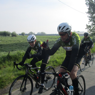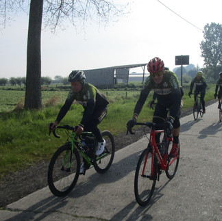 Mooie baantjes, gekende omgeving maar toch komen we er niet zo vaak. Voor we er erg in hebben zijn we in Koewacht & keren we terug. Geen cafƩ's, dat is wel het nadeel van deze route. Langs de expressweg wordt een stevige vrijaf gehouden. Een paar enthousiastelingen missen het 'tot aan de brug' (of verstaan de verkeerde brug). Komen ze nog terug of niet? Nog even wachten, en wachten...en wachten...En ze kwamen terug.