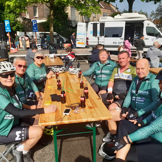 “Daar zijn altijd de cafeetjes open” zegt Sandra. Langs kronkelende modderige baantjes rijden we naar Wieze. Heuvel op heuvel af, in Meldert moet Martine een tandje bijsteken, maar ze houdt vol. Geen zuchtje wind en we genieten allen volop van de eerste zonnestralen.