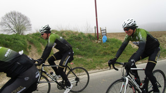 Eric & Jochen nemen de kop, er staat best wat wind. Draaien en keren via Berlare, Schoonaarde en Lede gaan we toch naar het heuveldeel. We horen dat het wat stiller wordt achteraan als er naar boven wordt gereden. Er wordt een stop ingelast voor een koekje en plasje, voor we terug aanzetten voor de heuvels deel 2.