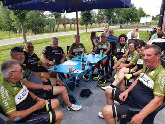 Ook de C groep ging van start om 8h30. Er worden snel wat foto's genomen van de groepen B2 & C. We vertrekken richting Kalken. Sandra & Odilon nemen de kop à 24/u, een goed tempo voor allen. Mooie rustige baantjes in eigen streek, straatje in en uit, langs de kapel van de Boerinnengilde naar het Molsbroek in Lokeren. De zon is van de partij ; er wordt veel bijgepraat en kennis gemaakt onder elkaar.